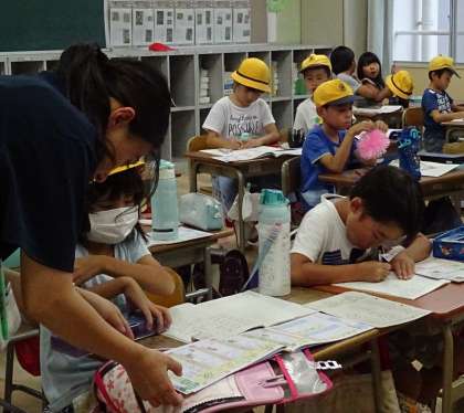 参加している子どもたちは、担当学年の先生によるサポートを受けながら、宿題や自主学習に取り組んでいます。