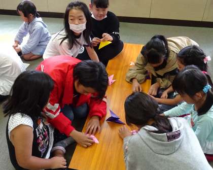 今の6年生も、1年生や2年生の時には、お兄さんお姉さんに教えてもらいながら鶴を折っていたのです。