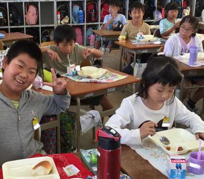 まぐろのオーロラ煮のソースには、ケチャップ、砂糖、赤みそを使っています。コクのある味付けで、子どもたちに大人気の献立です。