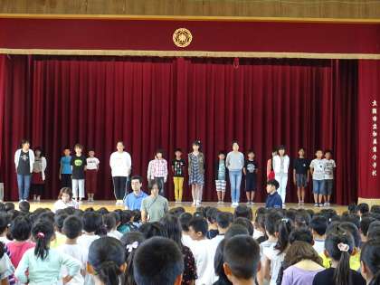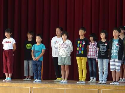 先週の児童集会で、後期の学級代表や委員会代表の紹介がありました。