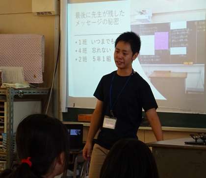 教室に戻った先生は、子どもたちへの最後の言葉と一人一人へのプレゼントを用意していました。