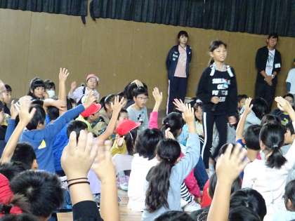 児童集会「この先生だあれ?」(10月17日)・・・1
