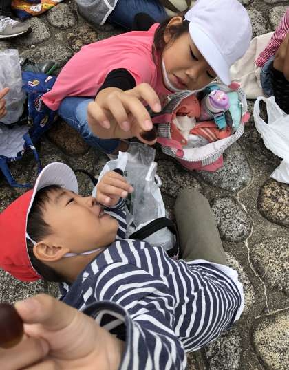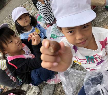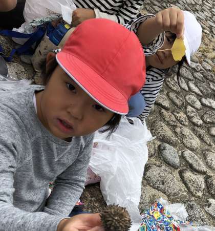 公園内のどんぐりの木がある3か所を回り、3種類のどんぐりを集めることができました。