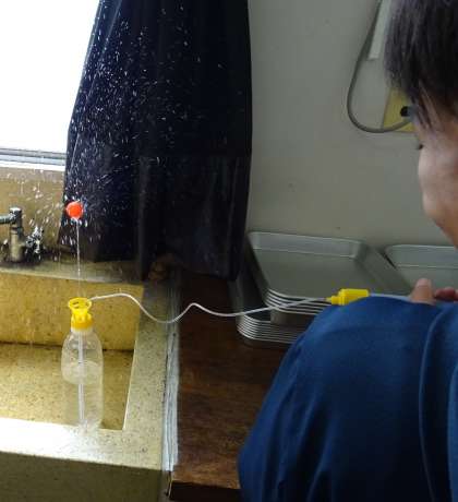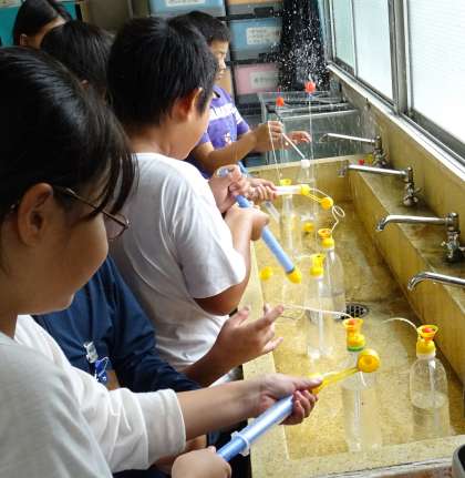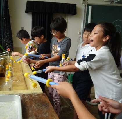 子どもたちは、びしょびしょになりながら実験を楽しんでいました。