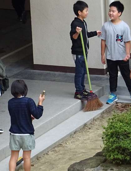 運んでいる時に落とした廊下の土を、すぐに掃除している姿は、さすが5年生!