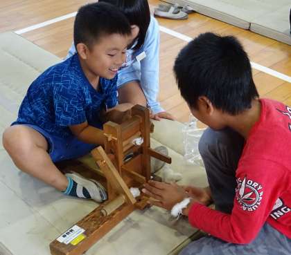 わたのたねをとる「わたくり」という工程です。
