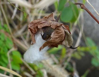 わたは、美しい花が咲き、実を結び、そして柔らかなわた毛が吹きます。