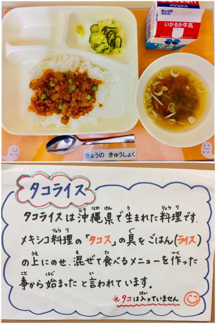 タコライスは、沖縄で生まれた料理で、メキシコ料理のタコスの具材をご飯のせ、混ぜて食べる献立を作った事から始まったと言われています。