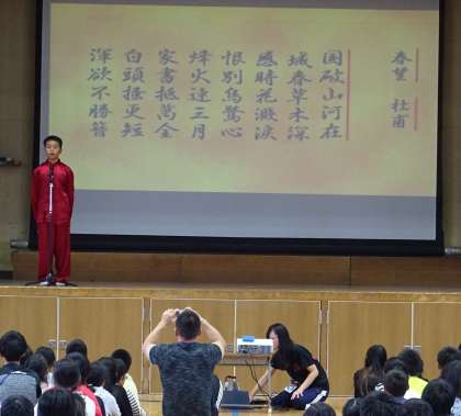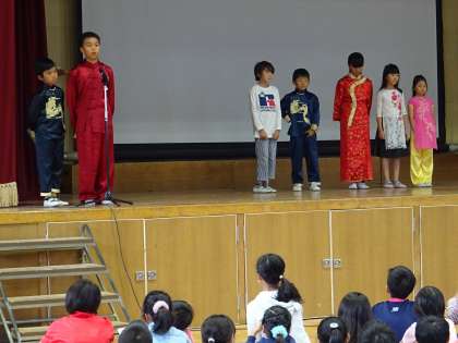 最後に、明日の中国語弁論大会に参加する児童による漢詩「春望」の暗唱が披露されました。