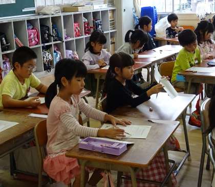 教室に戻った子どもたちは、外国の遊びを体験して楽しかったことや、外国の文化を知って驚いたことなど、感じたことを感想文に書いていました。