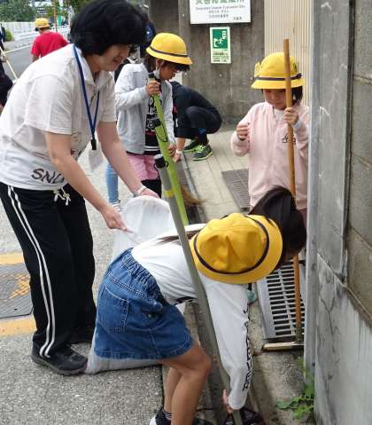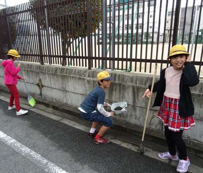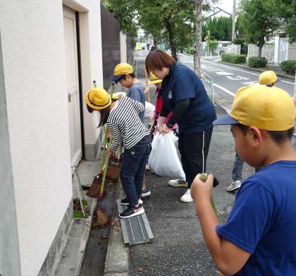 校庭に咲くキンモクセイの甘い香りが心地よく漂う中、子どもたちはモクモクと清掃活動に取り組んでいました。