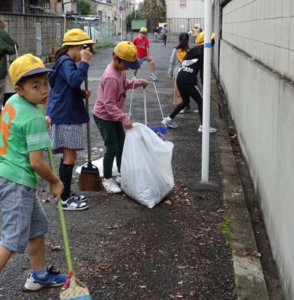学校周辺の正門から南側にかけての道路は、地域にお住まいの方が、毎朝ゴミ拾いをしてくれています。