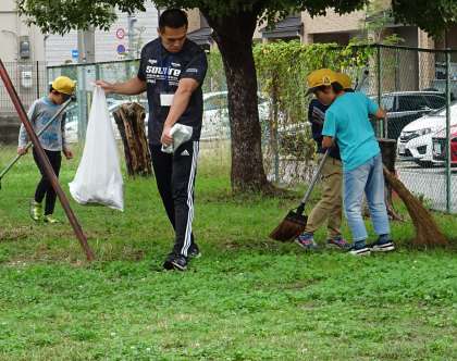 普段から利用させてもらっている児童公園でも、清掃活動をしました。
