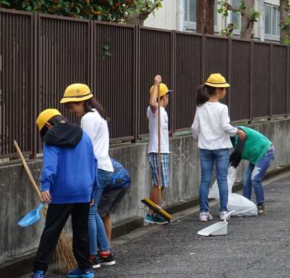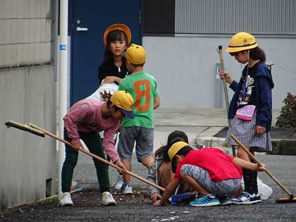 清掃活動前、たくさんの落ち葉やゴミで汚れていた学校周辺の道路が、見る見るきれいになってくると、子どもたちの「やり遂げたい」気持ちに火がついたようです。
