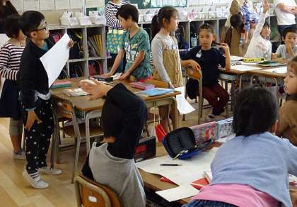 友だちが描いた絵の良い所を見つけて発表します。