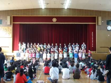 本日の児童集会は3年生の音楽発表会でした。みんなしっかり揃い、素直な性格から素直なきれいな歌声がこだましました。この見事な合唱を、いつか保護者や地域の方々にも聞いていただきたいものです!