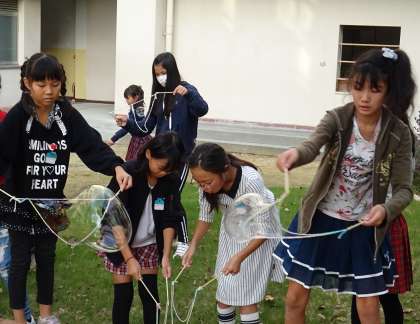 科学クラブは、シャボン玉づくりに挑戦しました。