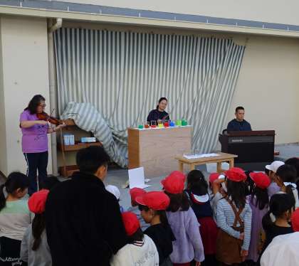合奏が始まると、子どもたちは笑顔で歌ってくれました。