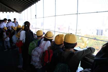 大阪城では、天守閣まで階段で登りました。天守閣からは「観覧車が見えた!」や「あべのハルカスが見えた!」など子どもたちは、色々なものを発見し驚いていました。