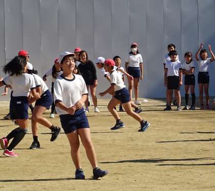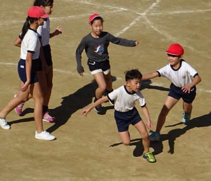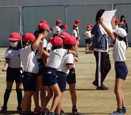 高学年の子が大きなカードを持って、低学年の子を連れて行っていました。
