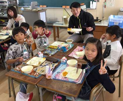 みんなで給食を食べて、楽しい気分になってくれるといいなと思います。