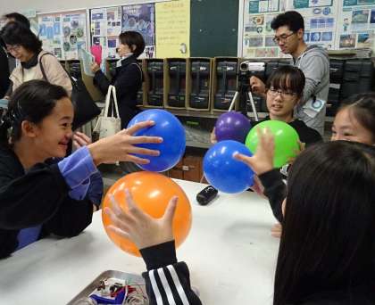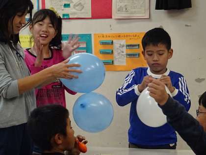 電気をためて、みんなで手をつなぎアルミホイルを触ると…