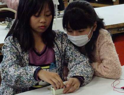 モーターを回して発電する実験は、糸をしっかりと巻きつけてから、軸が上手く回転するように引っ張る必要があります。