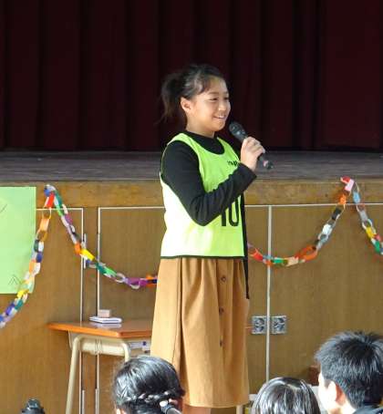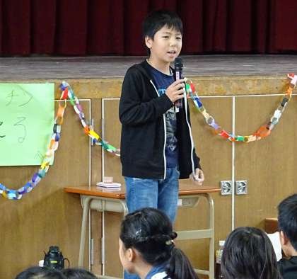 各学年の代表児童が、閉会式で感想を発表している様子です。