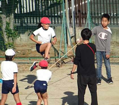 簡単そうに見える大なわとびですが、色々な跳び方ができる奥深い運動です。