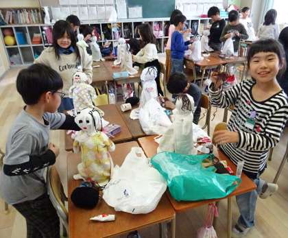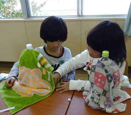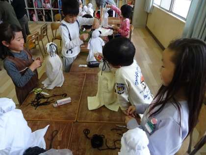 赤ちゃん(人形)を作っている様子です。