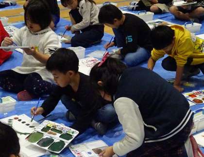 1学期に、天空美術館を見学した3年生の子どもたちは、絹谷先生から教えてもらうことに、ワクワクしている様子でした。