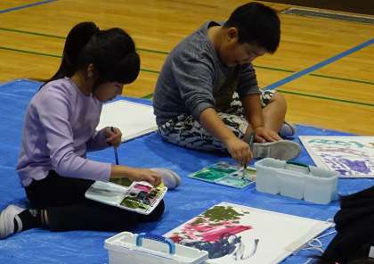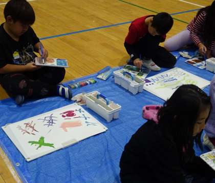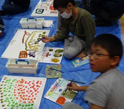 絹谷先生の勢いある指導に刺激を受けた子どもたちは、自分の芸術感性を爆発させている様子でした。