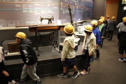 また、足踏みミシンや掃除機などの昔の道具が展示してあるコーナーでは、興味深そうに見学していました。