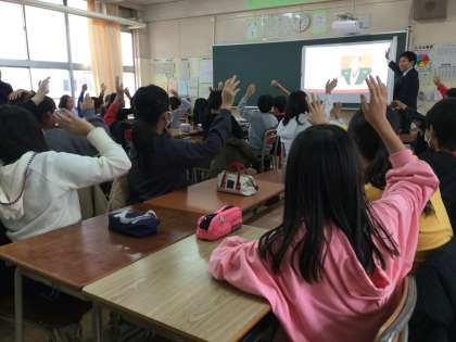1組は、教室で社会科の学習を体験しました。