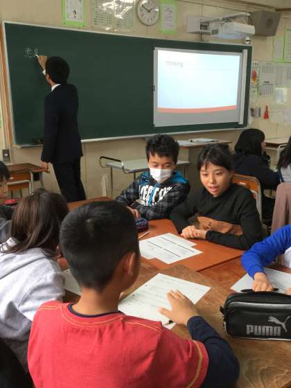 少し大きい机と椅子に座り、「ペリー来航」についてグループワークをし、発表をしました。1時間がとても短く感じられました。