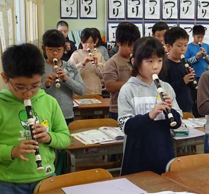 リコーダーの持ち方や歌う時の姿勢など、本番に向けた練習は、完成度を増しています。