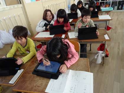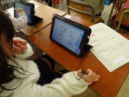 タブレット端末を使った学習の様子です。