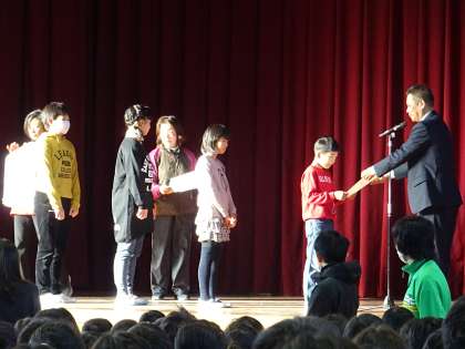 今週の児童朝会において、4名の児童が表彰を受けました。