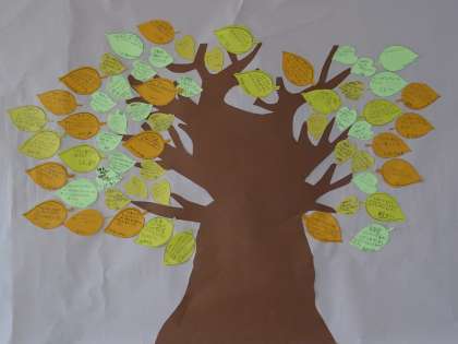 子どもたちは、学年へのメッセージが書かれた葉っぱを、嬉しそうに読んでいました。