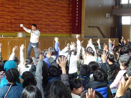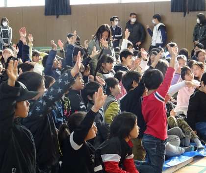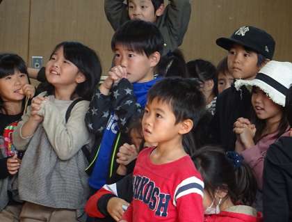 子どもたちは、大きく手を伸ばして欲しいアピールをします。