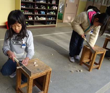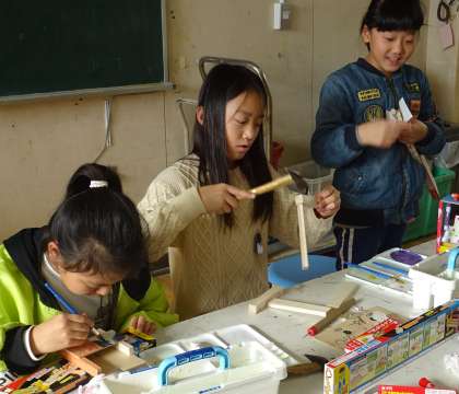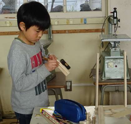 のこぎりや金づちを使う作業です。