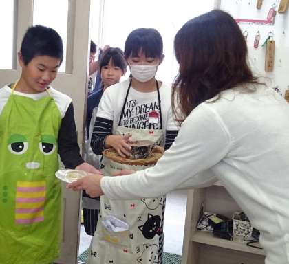 授業が終わると、5年生の子どもたちは職員室に自分たちが作った料理を届けてくれました。