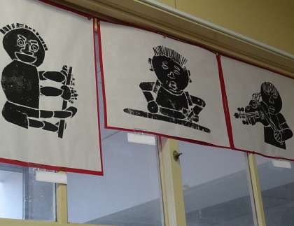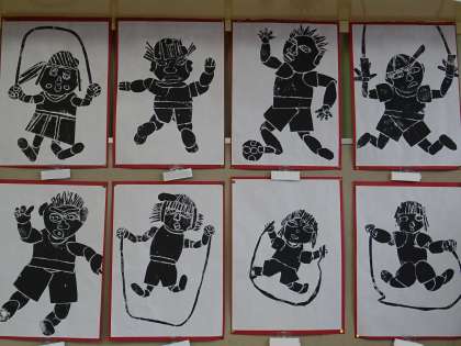 3年生 紙版画展・盲導犬リーフレット展(12月17日〜)・・・2