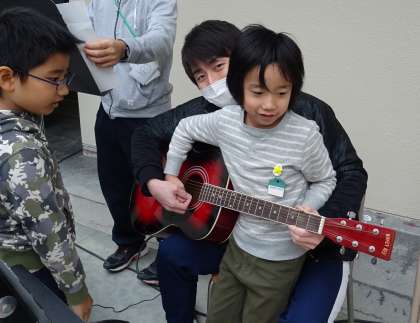 演奏が終わると、子どもたちが先生の周りに集まってきます。