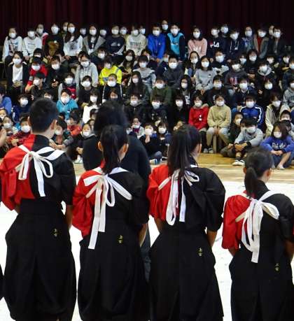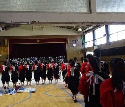 入場し整列すると、子どもたちの目は高校生の皆さんに釘付けです。