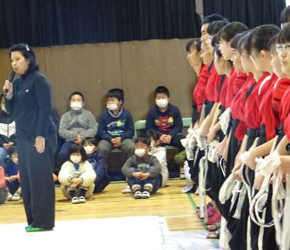 部活顧問の先生から、書道パフォーマンスとは何か、その魅力や楽しさ、見どころなどを説明していただきました。