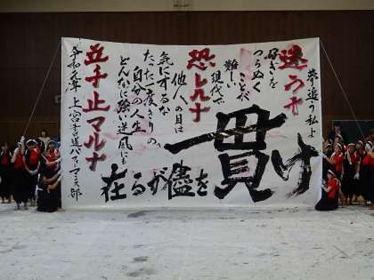 「全国大会」という舞台で勝負している上宮高校書道パフォーマンス部の全力作品。