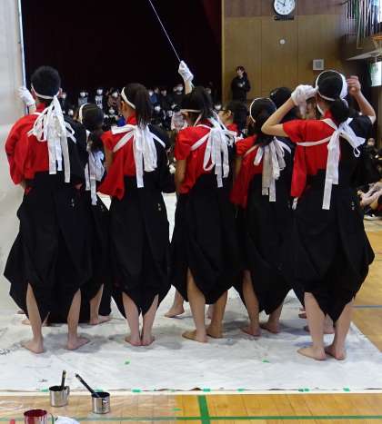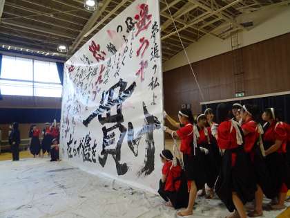 書道パフォーマンス部への入部を目標に上宮高校を受験した生徒が多くいる。