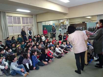 子どもたちが楽しみにしている図書ボランティアの方々による「読み聞かせ会」。