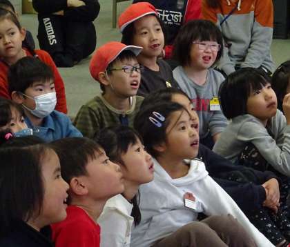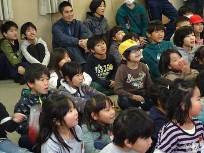 子どもたちは予想しながら、次々とめくられる絵に驚いていました。